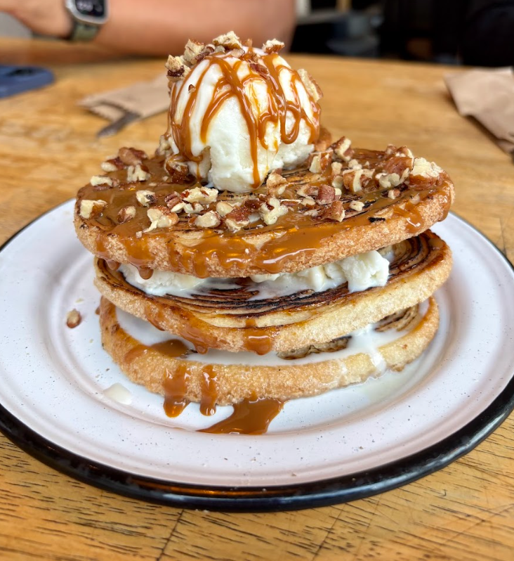 Y si eres de los que guarda espacio para el postre: las orejitas con cajeta y helado de mascarpone son pura gloria ahumada. Crujientes, dulces, cremosas. Con nuez encima. Amor a cucharadas.
