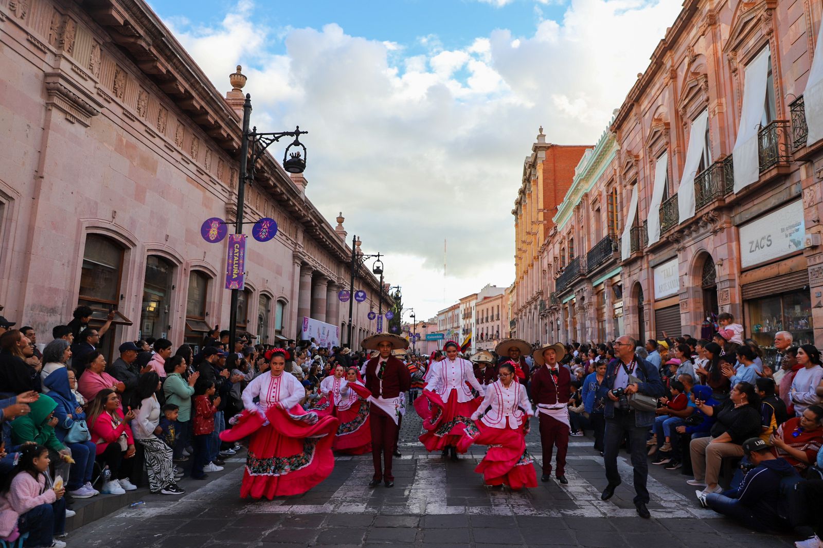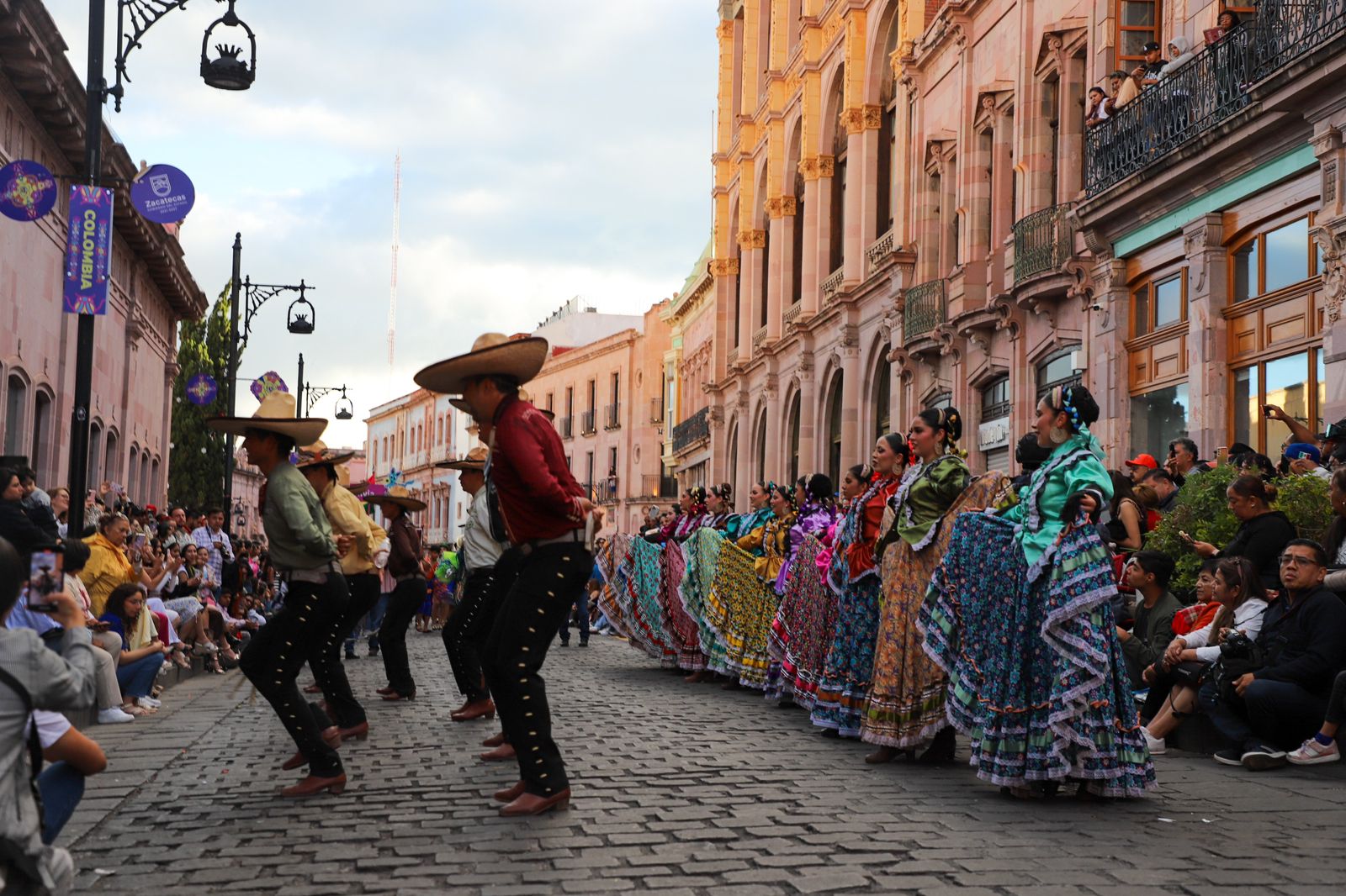 Para el acto de clausura, un contingente recorrió nuevamente las principales calles del Centro Histórico de la capital zacatecana para despedir las más de 80 actividades, con vistosos trajes típicos, bailes representativos de los pueblos de México, Bolivia y Colombia.