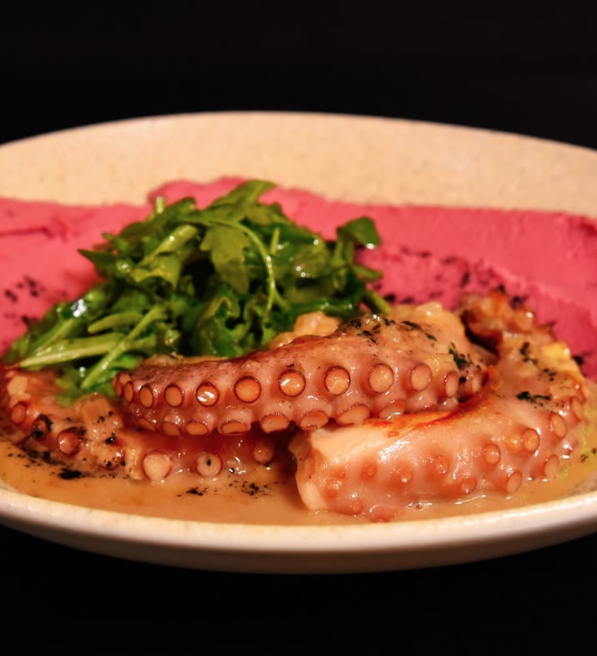 Ve con calma para que sin prisas, como debe ser, degustes el pulpo Aruma, marcado al fuego, con ese sabor que solo otorgan las brasas.