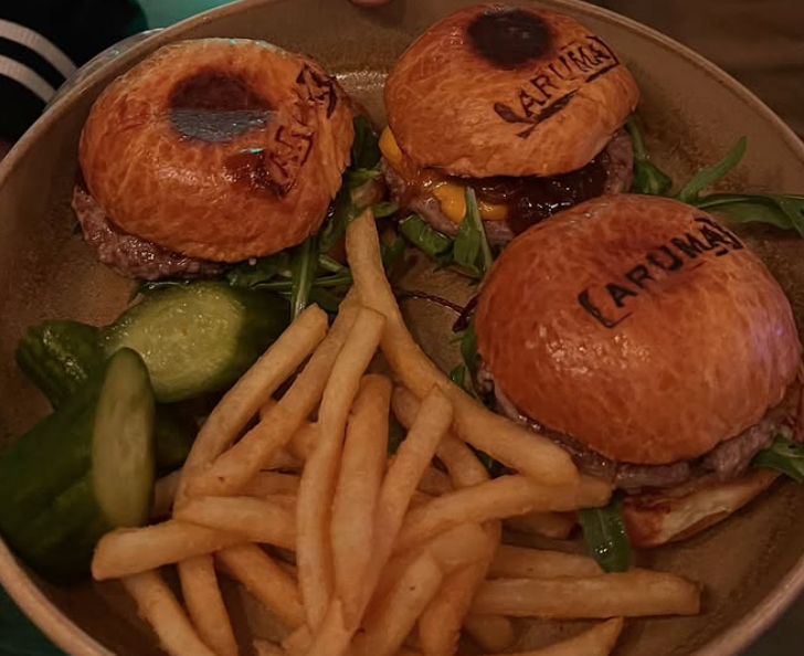 Las hamburguesitas son otra delicia bien pensada. Se preparan con bollo brioche tostado y sliders de carne Angus, jugosa y sabrosa. Llevan un aderezo de rábano picante (radish), cebolla caramelizada con cerveza, y una barbecue casera hecha con chile ancho, pasilla, mulato, piña asada, vinagre y azúcar mascabado.