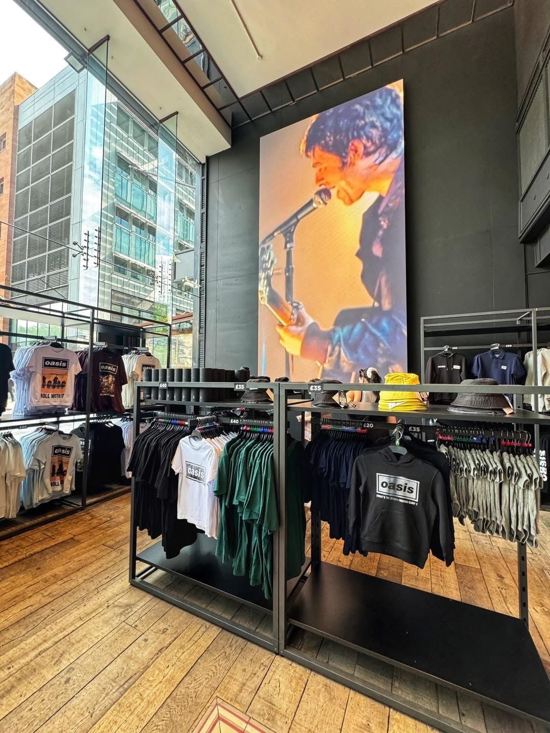 Esta no es una simple tienda: es un homenaje vivo al legado de Oasis. Los fans encontrarán camisetas con portadas de álbumes icónicos como Definitely Maybe y (What’s the Story) Morning Glory?, además de diseños inspirados en himnos como Wonderwall y Supersonic.