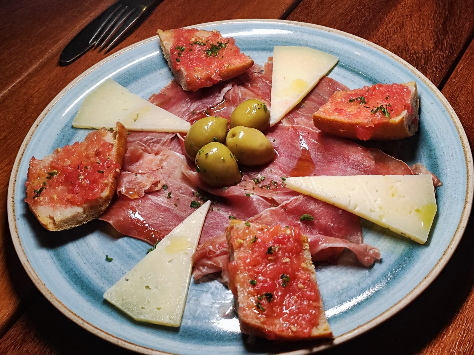 • Tapas frías y calientes: entre las opciones frías se encuentran patatas al alioli, canelones de pollo, y tortillas españolas; entre las calientes destacan el calamar estilo mediterráneo y croquetas.