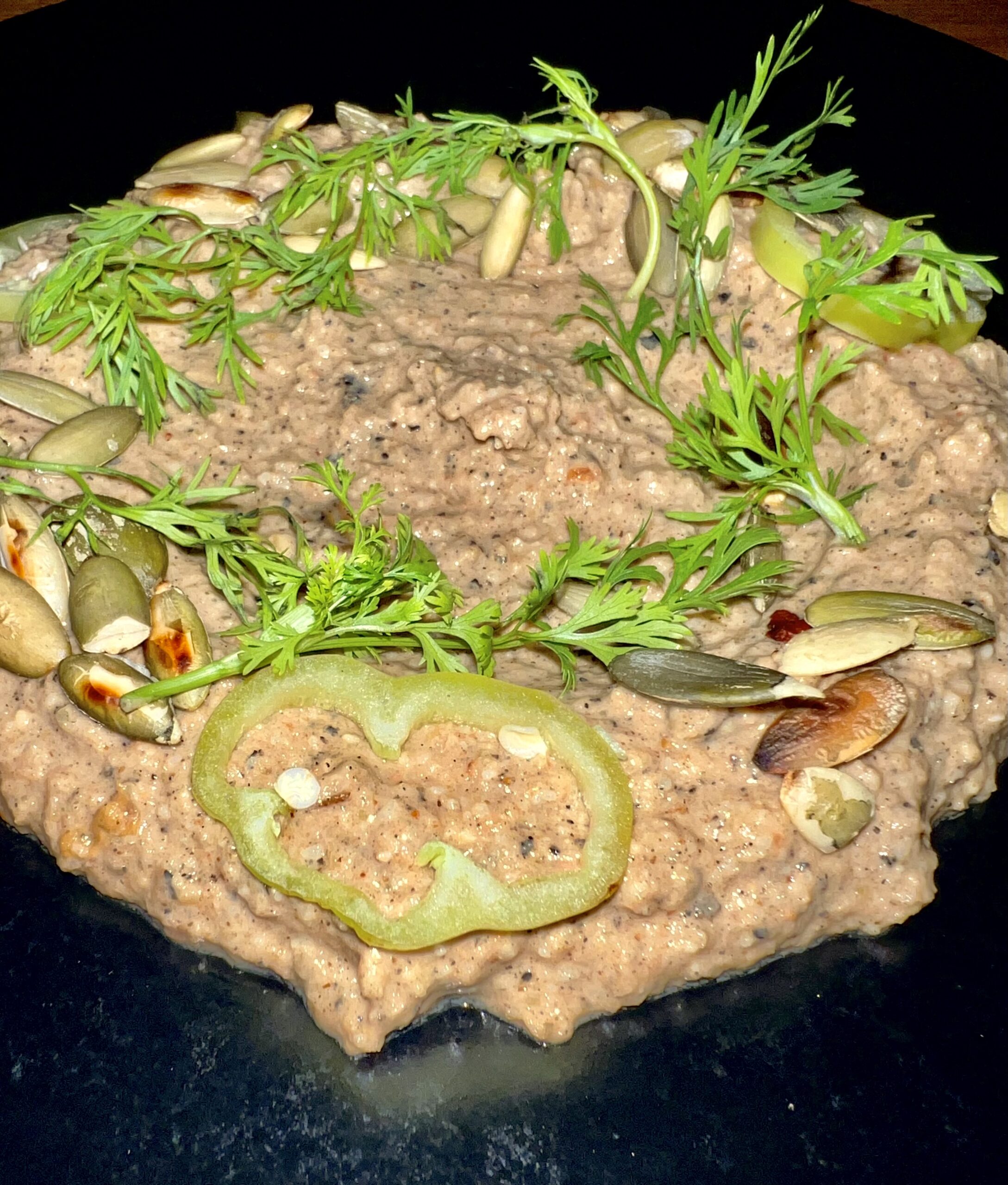 Los kibis, de clara influencia libanesa, se elaboran con carne de cerdo y se presentan sobre un espejo de reducción de escabeche oriental. Se trata de un platillo que mezcla tradición, migración y técnica artesanal.